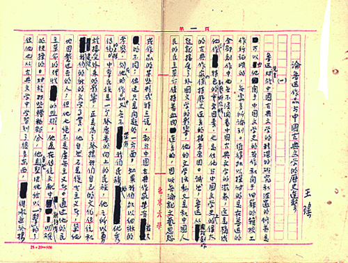 《論魯迅作品與中國古典文學的歷史聯(lián)系》手稿(1956年)