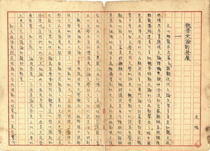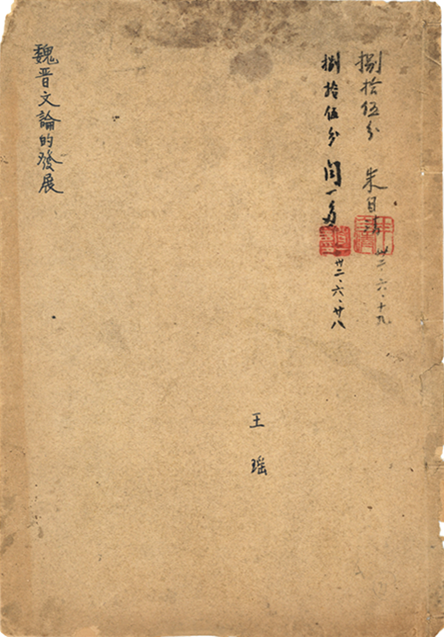 王瑤學位論文《魏晉文論的發(fā)展》封面,有朱自清、聞一多的打分