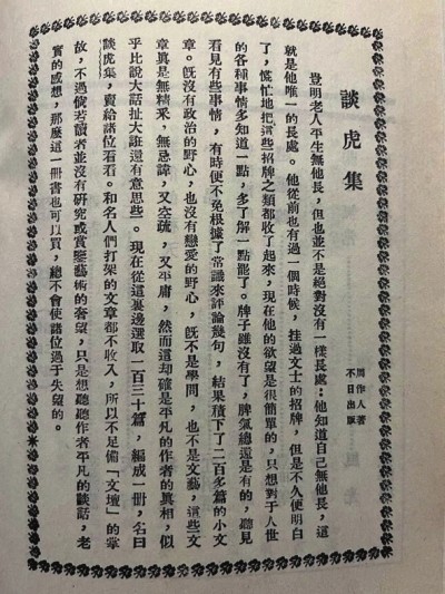 看《談虎集》的廣告,雖然前后共刊載了八次,但內(nèi)容則是完全一樣的。廣告全文如下: