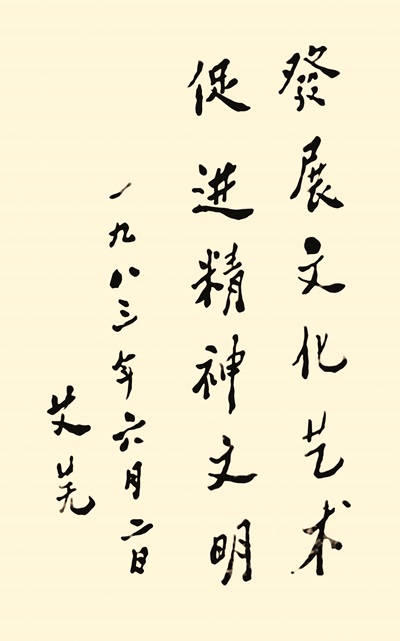 艾蕪于1983年6月在新都文聯成立籌備會期間題詞