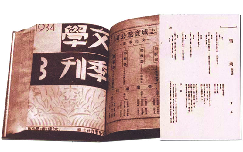 1934年7月,由文學家巴金推薦,《雷雨》在《文學季刊》第一卷第三期上發表