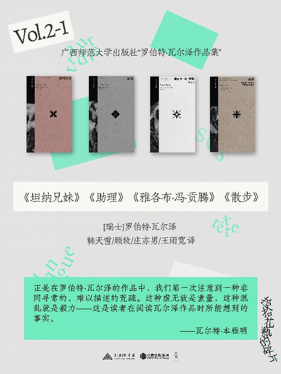 瓦爾澤在德語文學中有著至關重要的地位,他被認為與卡夫卡和穆齊爾齊名,是現代德語文學的奠基人,但他在中文世界的引介一直不足。直到去年下半年,有四家出版社和出版公司先后推出了他的幾部重要作品的譯本,讓讀者可以一窺這位作家的文字和精神。