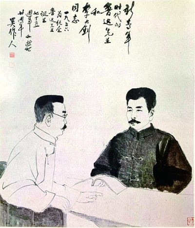 吳作人1956年作《新青年時(shí)代魯迅先生和李大釗同志》