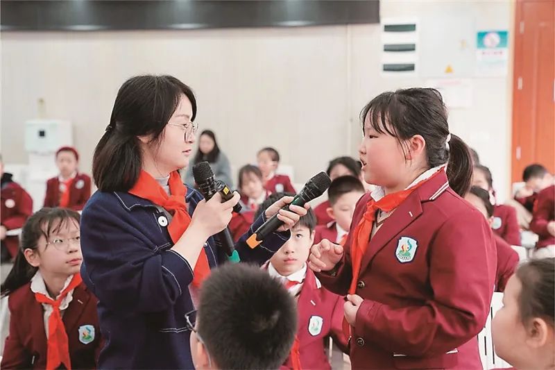2024年3月14日,受陜西省委宣傳部、陜西省作家協會邀請,劉芳芳(左)在西安碑林區建國路小學進行科普科幻公益講座。作者供圖