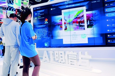 新的人工智能技術可以為人們提供定制詩歌和明信片。圖為觀眾正體驗可以生成詩歌的AI大模型。光明圖片/IC PHOTO
