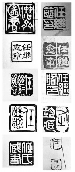 以上印章,其中第—、三、四、五、六、八、九、十印帶有明顯的篆刻藝術傾向,水平高低不一,推測有些得于粉絲的贈送,也有可能是任繼愈在北大或某些書市請人刻制的。而二、七印依筆者判斷是日常生活用印的移用。
