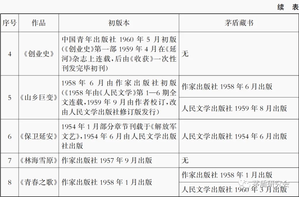 從藏書情況可以看出,茅盾對于作品的收藏情況,既有單本收藏,如《紅巖》《紅日》,也有副本的收藏,如《山鄉巨變》《青春之歌》,既有初版本,如《紅巖》《保衛延安》,也有非初版本的收藏,如《紅旗譜》《山鄉巨變》《青春之歌》。
