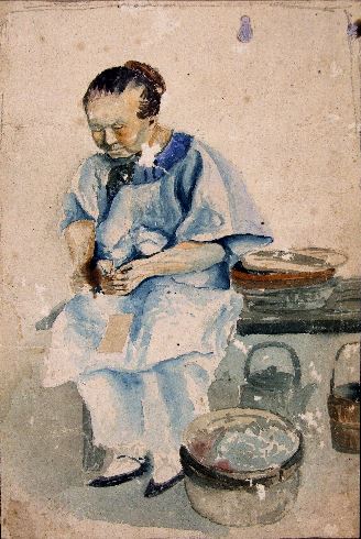 《祖姨母》顏文樑 16.2×11cm 紙本水彩 1912年 蘇州市公共文化中心藏