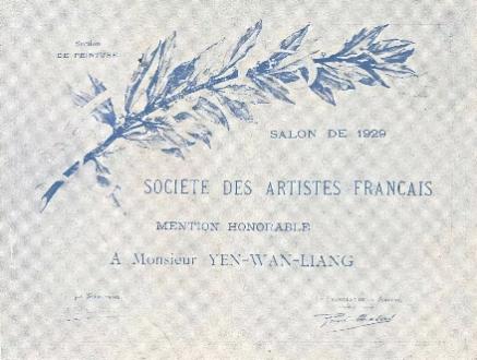 1929年,法國春季沙龍授予顏文樑榮譽(yù)獎證書