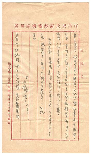 接獲來書,欣慰無已,把晤匪遙,良可喜也。弟至內(nèi)地后,曾考取聯(lián)大、中大、政校諸校,以政校費(fèi)用較省,故在該校之外交系就讀三年,去歲因應(yīng)考譯員而休學(xué),曾在重慶與諸友人創(chuàng)一太平洋出版社,辦一個(gè)太平洋雜志(由弟任編輯),雖只出了三期,現(xiàn)在看看也頗幼稚,只是當(dāng)時(shí)大家情緒好,倒也很開心。現(xiàn)在很想到新聞界來服務(wù),未知能加入貴報(bào)工作否,可否請(qǐng)先生鼎力紹介。職位待遇在所不計(jì),最好是內(nèi)勤的,因?yàn)榘滋爝€有利用多讀點(diǎn)書,政校弟不想再去復(fù)學(xué),政治空氣太濃厚的地方讀起書來太沒味。如果貴報(bào)不可能,可否在滬、杭、京等地之報(bào)館代為設(shè)法。如有端緒,弟即來滬奉訪,兼便接洽,請(qǐng)即示復(fù)。