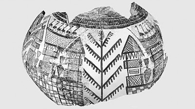 從主題上看,兩河流域彩陶幾何紋飾種類很多,線條多為直筆,以單元重復或二方連續構成圖案整體。其中網紋主題似乎最受制陶工匠們的青睞,貫穿整個彩陶文化期。學者們推測,這一紋飾的出現是模仿了當地特有的籃子編織形態。幾何紋之外,動物、植物主題也有不少。在哈蘇納和薩馬拉文化的陶碗中,都可以看到四只山羊圍成一圈的造型,它們互相追逐,構成一個圓形結構。在哈拉夫文化的陶碗中,能看到在一棵大樹的四周,錯落著幾棟多層尖頂房屋,房頂上站滿了一排鳥,場景宏大,生氣十足。歐貝德文化陶罐上也能看到棕櫚葉和山羊形象。事實上,山羊、大樹、房屋,全都具備當地的特征。與我們今天的認知完全不同,考古證據顯示,史前時期兩河流域的氣候要比現在涼爽,河邊的山坡上還間或覆蓋著草地,植物豐富,山羊、鹿、野豬比比皆是。大約在前陶新石器時代早期(公元前9500—8500年)這里就出現了農業,人們不僅開始栽種大麥、小麥,也馴化了山羊、綿羊。可以確信,兩河流域的史前彩陶就是在農業文明的基礎上發展起來的。