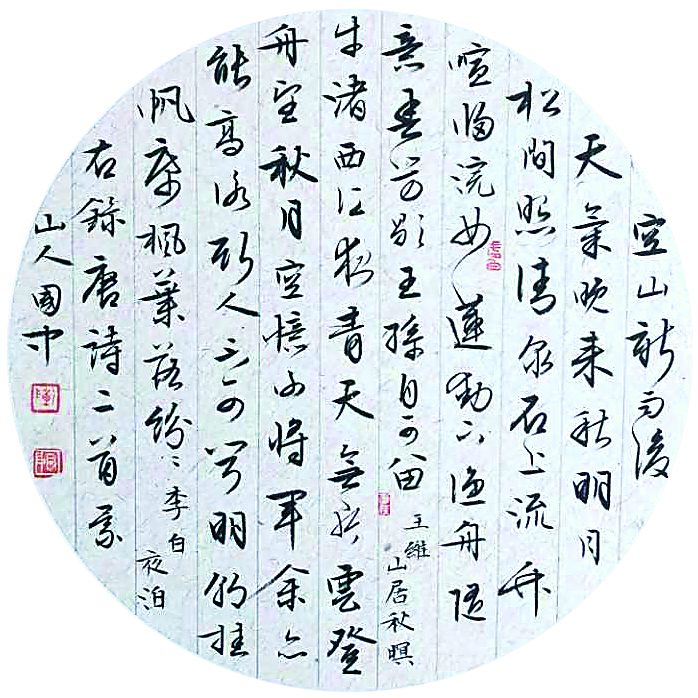 唐詩二首 王維《山居秋暝》 李白《夜泊》 陳國中 書