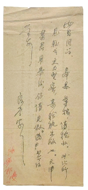 奉還尊稿,請檢收。此次所見較前更為整齊,甚盼能出版也。天津某君用畢后,仍請見假。匆此,即請學安!