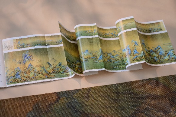 封面由多次獲得“最美的書”獎項的設計師張志奇老師操刀,將古畫與“人在畫中游”的理念相結合,3本書3種主色調,用3幅代表性畫作與作者手繪卡通人物結合,既保留了中國畫的特點,又不失童書的活潑、靈動。內文版式雅致,蘊含中式之美,閱讀節(jié)奏好,讓人手不釋卷。通過大拉頁展示了《千里江山圖》《搗練圖》,進一步還原畫作細節(jié),放大古畫之美。
