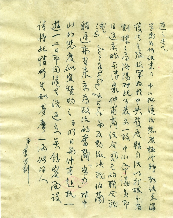 李大釗致胡適關于孫中山抵滬后之態(tài)度函