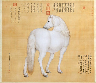 宮廷畫師畫走獸具備得天獨厚的條件。朝貢的名貴物種,如駿馬、獵犬、猛禽、異獸等,成為宮廷動物畫的重要組成部分,三位西洋畫師郎世寧、艾啟蒙、王致誠分別創作過“十駿馬”。