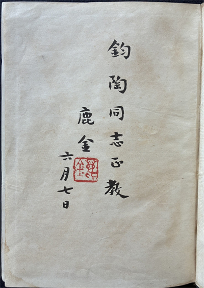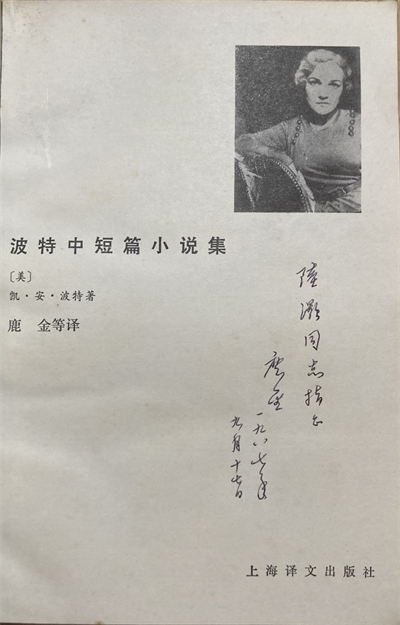 鹿金在《波特中短篇小說集》上的題詞