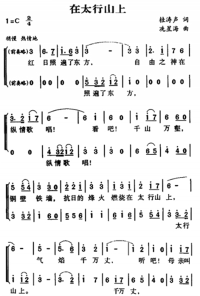 太行山,是英雄的山,是抗日烽火中的銅墻鐵壁,在大家心中,這首歌的藝術(shù)形象,就是中國共產(chǎn)黨,就是八路軍。無論當年還是現(xiàn)在,直到永遠,它都是中共領(lǐng)導的敵后抗日根據(jù)地偉大的音樂標志。