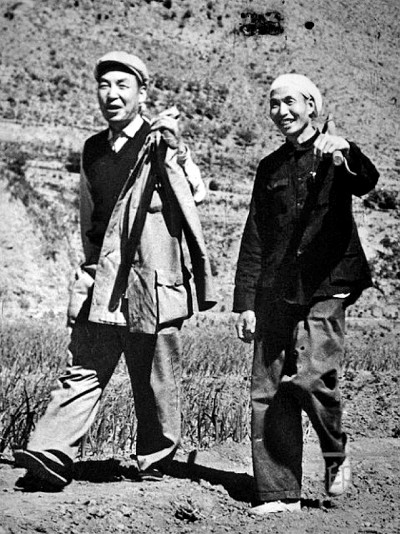人民的火熱生活是趙樹理創(chuàng)作的豐富礦藏,也是他的創(chuàng)作實(shí)踐能夠在當(dāng)下得以運(yùn)用的重要原因。圖為趙樹理(左)與群眾一起勞動。資料圖片