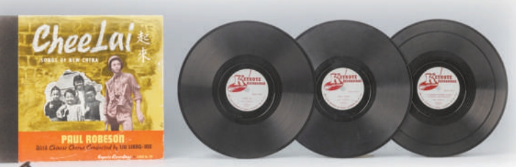 1941年,美國黑人歌唱家保羅·羅伯遜演唱《起來(義勇軍進行曲)》的唱片。 中國共產黨歷史展覽館 梁茵 攝