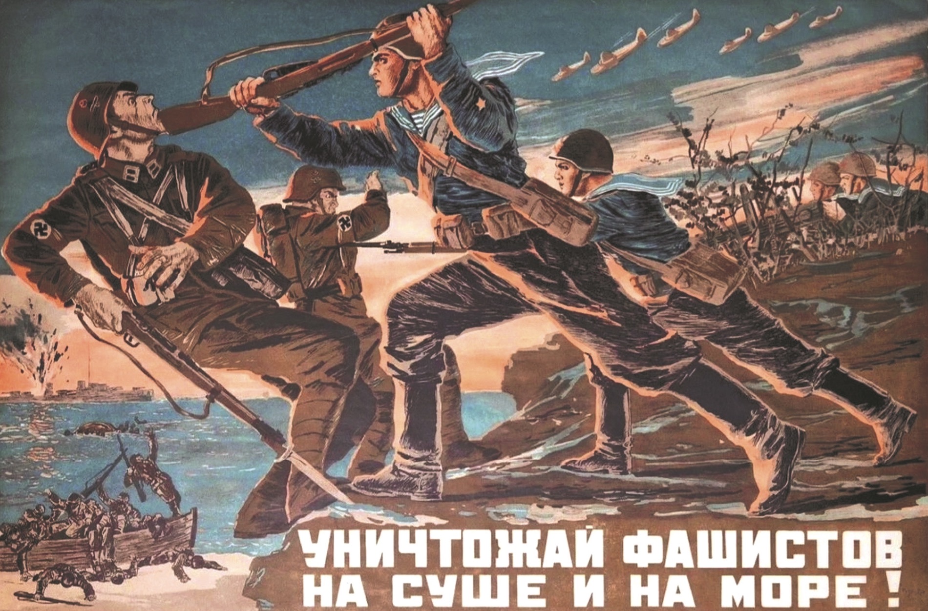 蘇聯文藝工作者創作的海報 文字大意:“消滅陸上和海上的法西斯分子!”
