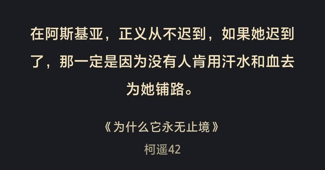 虞婧:除了女性價值和力量的展現,我能感覺到作品對世界的公平正義、社會結構和運行邏輯也在做一些探討。比如提到“在阿斯基亞,正義從不遲到,如果她遲到了,那一定是因為沒有人肯用汗水和血去為她鋪路”,比如麗茲提出“認為陷入他人的騷擾是因為自己還沒有力量”的邏輯是不對的,比如文中說到“憤怒”是很重要的。作品中也會提到一些關于哲學、社會學的書籍。