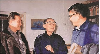 1982年,夏衍(中)與電影導(dǎo)演謝晉(右)、上海電影制片廠廠長徐桑楚(左)在一起討論劇本