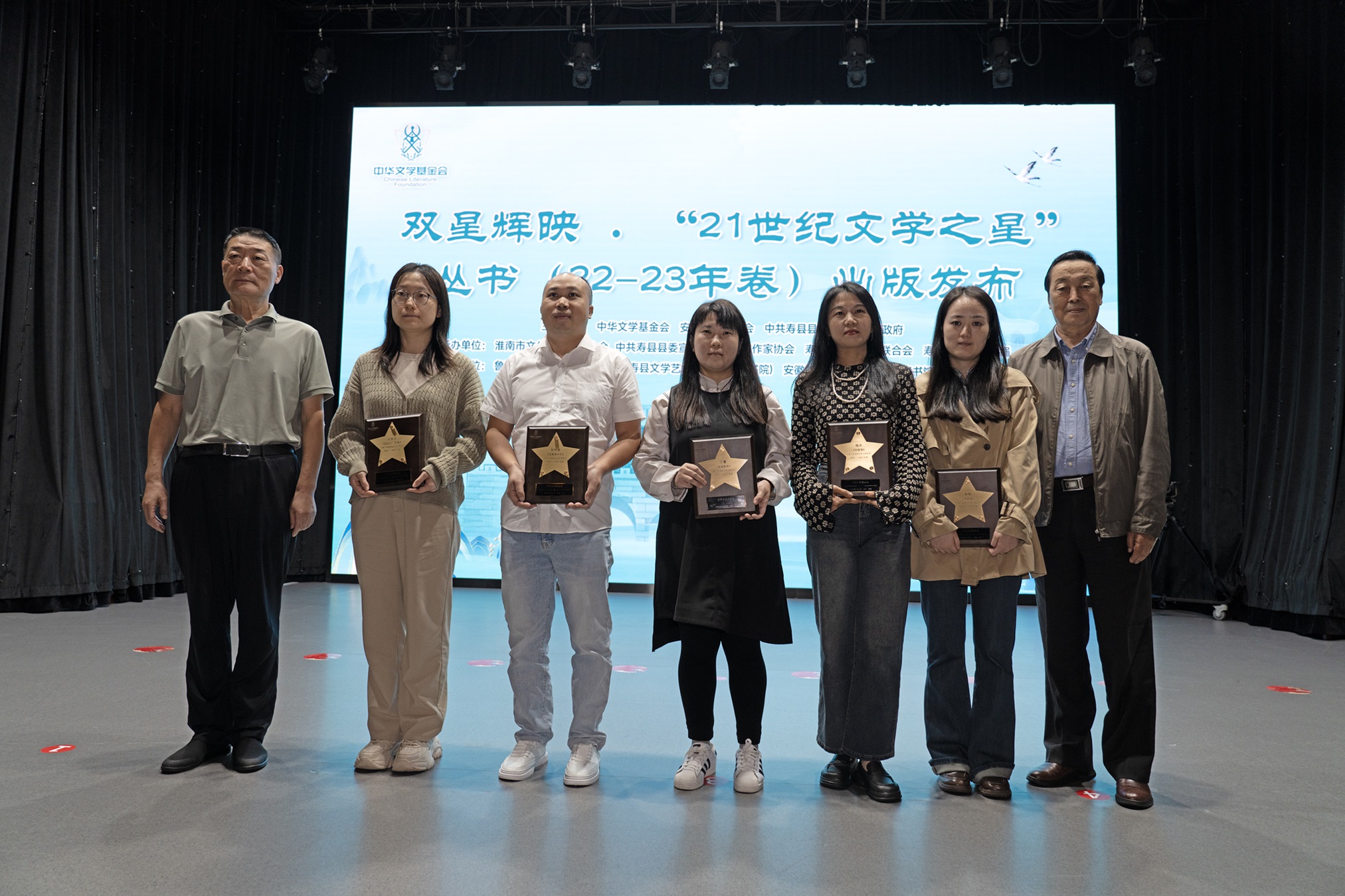 9月29日上午,壽縣文化藝術中心內,“21世紀文學之星”叢書2022-2023年卷出版發布會暨2024-2025年卷征選計劃啟動儀式隆重舉行。中華文學基金會理事長施戰軍,安徽省作協主席陳先發,安徽省淮南市壽縣縣委常委、宣傳部部長饒潔先后致辭。徐貴祥、彭學明、王躍文、許春樵、羅偉章、哲貴、肖勤、肖江虹等曾入選叢書的作家代表,以及“叢書”編委、評論家白燁、梁鴻鷹,“叢書”出版單位作家出版社副總編顏慧等出席發布會。中華文學基金會秘書長安亞斌向壽縣文學藝術院捐贈“21世紀文學之星”叢書簽名本,寓意書籍猶如文學希望的種子,將在壽縣的文學土壤中扎根,讓文學精神在這里延續。在青春洋溢的音樂中,2024-2025年卷征選計劃正式啟動。活動由中華文學基金會文學部負責人趙蓉主持。