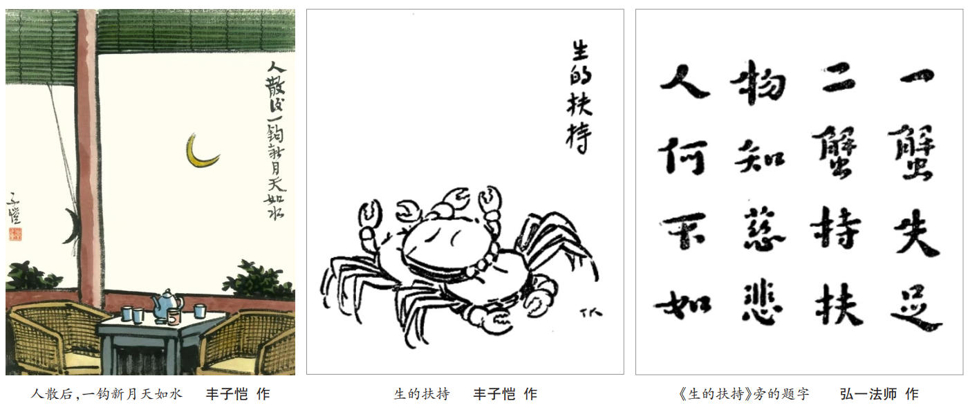 翻閱《護生畫集》可見藝術家筆下滿是對人間的悲憫?!渡姆龀帧芬泽π返姆龀纸沂尽拔镏缺撕尾恢钡膴W義,《吾兒?!》中母雞喪子的哀痛正如戰爭中家破人亡的悲哀,《!??!》呼吁“不履生蟲”——作家在《則勿毀之已》中所言的“只恐這一點殘忍心擴而充之,將來會變成侵略者”便足以解釋這畫“事”背后的畫“理”。至于其隨筆或書信中透露的對風景的愛,則應放到其哲學觀念中予以理解。