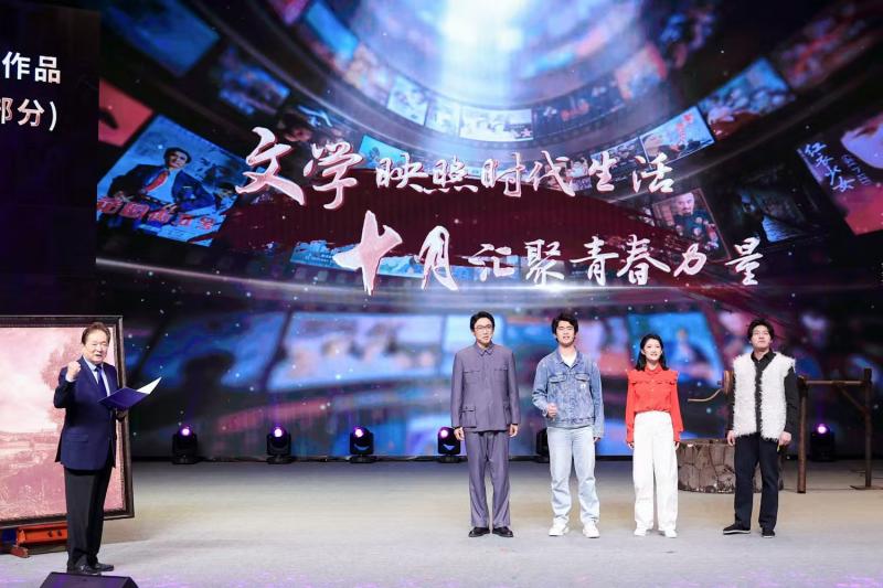 開(kāi)幕式后半段,著名播音藝術(shù)家瞿弦和與青年演員們通過(guò)誦讀和演繹《沒(méi)有紐扣的紅襯衫》《平凡的世界》《北上》等根據(jù)“十月”文學(xué)作品改編的影視作品和原著中的金句,帶領(lǐng)觀眾感受不同年代的青年力量。