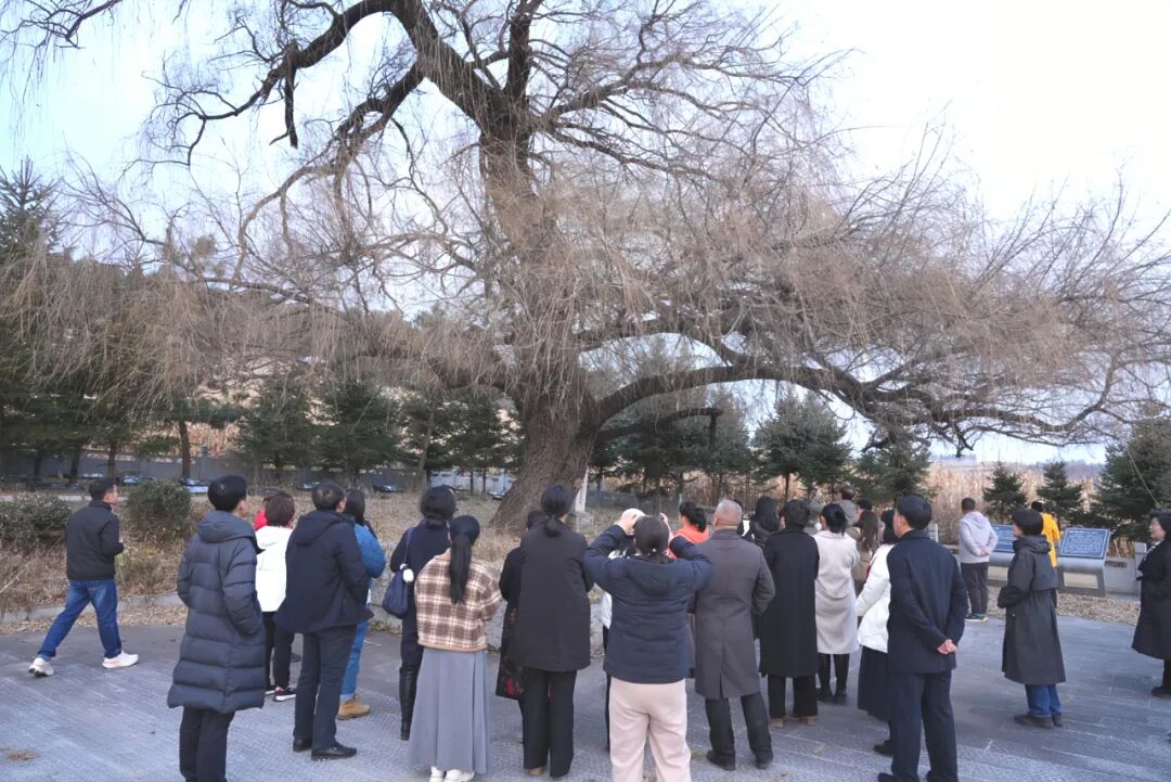 在東北地區第一個人民政權——和龍市藥水洞蘇維埃政府遺址,講解員為作家們輕聲講解:“在藥水洞這個不到100戶人家的鄉村里,就涌現出金順姬等70多名抗日烈士。藥水洞人民在中國共產黨的領導下,高舉抗日救國的旗幟,始終站在斗爭的最前列,在延邊的抗日斗爭史上譜寫了壯烈詩篇。”在遺址碑石旁,有一棵樹冠巨大的百年垂柳,是由樸相活烈士親手栽下的。這棵柳樹歷經刀斧砍伐、烈火焚燒等磨難,仍頑強存活、枝繁葉茂,象征著革命精神的永恒不朽?。