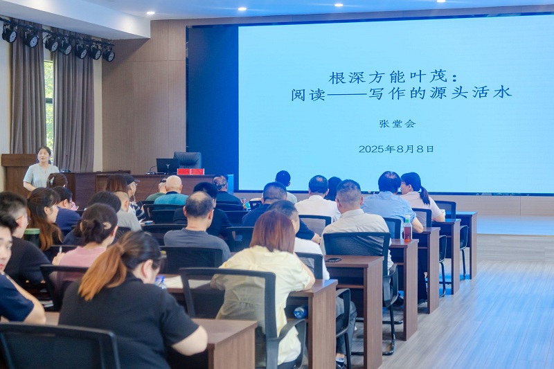 2025年8月8日下午,七十多名文學(xué)愛好者齊聚在揚(yáng)州市江都區(qū)文體旅局會(huì)議室,聆聽了揚(yáng)州大學(xué)文學(xué)院教授張?zhí)脮?huì)的“根深方能葉茂:閱讀—寫作的源頭活水”文學(xué)講座。