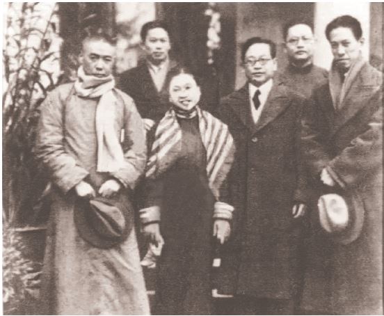 1935年12月,中國舞臺協會部分人員合影。左起:田漢、馬彥祥、俞珊、歐陽予倩、洪深、唐槐秋