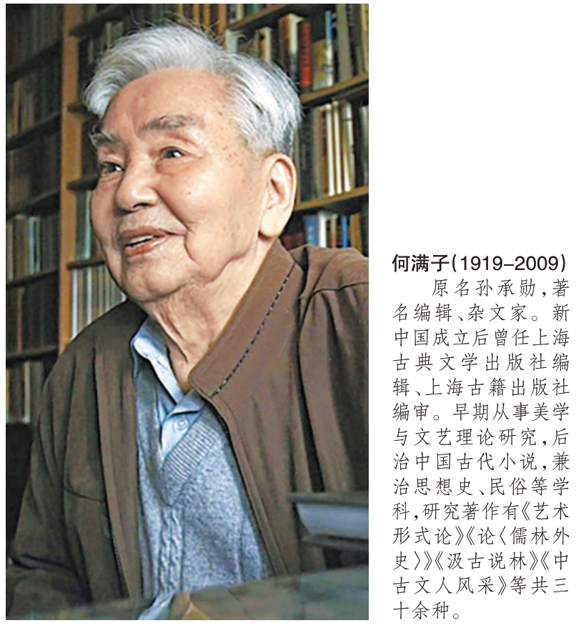 “文革”結(jié)束后,父親在寫作兒童長(zhǎng)篇小說《哪吒》和《岳云》的時(shí)候,還向少年兒童出版社推薦何滿子寫兒童長(zhǎng)篇小說,但何滿子推說沒有時(shí)間。后來南開大學(xué)召開全國(guó)古小說會(huì)議,劉葉秋教授問及上海還有誰(shuí)能夠注釋整理古小說文獻(xiàn),我父親首先推薦何滿子。但據(jù)父親說,他后來回來跟何滿子一說,卻被何滿子一口回絕。這造成我父親的不滿,認(rèn)為何滿子的地位高了,聲望大了,有點(diǎn)瞧不起人。后來何滿子給我來信,說是從未有過此事。可見可能是我父親耳聾,誤解了何滿子。這也是兩位老朋友之間的一場(chǎng)終身誤會(huì)。