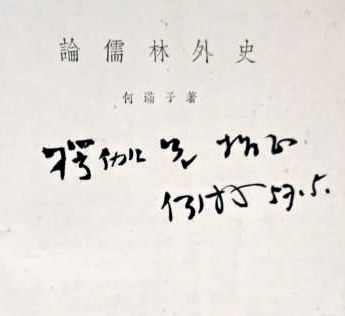 何滿子送給作者父親周楞伽的《論〈儒林外史〉》簽名本