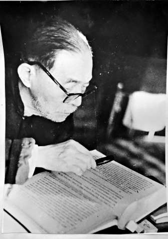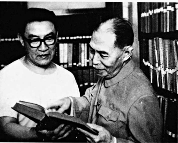 茅盾晚年在北京住所起居室撰寫回憶錄查閱資料(兒子沈霜與茅盾)。作者供圖
