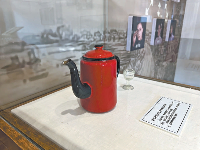 寫回憶錄用過的錄音機與寫作時用來洗眼睛的水壺。 中國現代文學館存