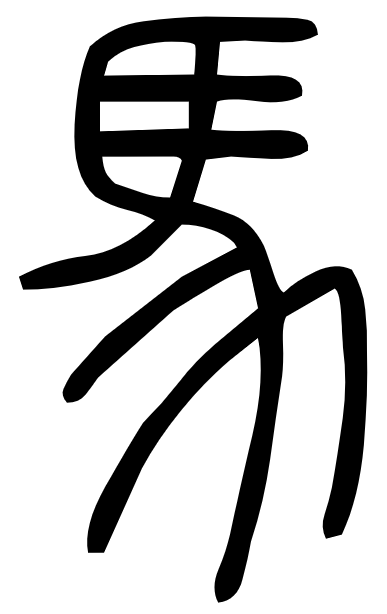許慎說小篆的“馬”字“象馬頭、髦、尾、四足之形”。按照他對古代文字的分類,“馬”是一個象形字。小篆中的“馬”可能還不夠形象,但對比從甲骨文到隸書的“馬”就可以基本了解其源流。古文字中的“馬”有如下一些寫法: