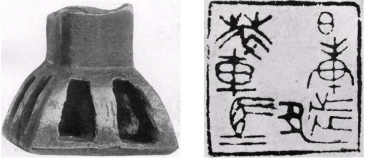 1.戰國“日庚都萃車馬”印:長7厘米,寬7厘米。日本友鄰館藏。紐上有方銎,用來裝柄;下半中空,用來裝炭火加熱,以便于烙印。