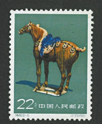 新中國第一套以“馬”為主要表現對象的郵票,是1961年11月發行的《唐三彩》特種郵票。這套郵票共8枚,其中4枚以馬為主題。
