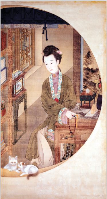 透過十二花神、十二月令,可以看到帝王們對時間的藝術表達,有著更立體的追求,這種追求有時也會突破時間的框架。如雍正朝《深柳讀書堂美人圖》(即《十二美人圖》)。這十二幅畫作原本并非卷軸,而是放在圓明園深柳讀書堂內一組十二扇圍屏上的裝飾畫。十二位美人端坐室內,對應著十二個月份。當這組插屏樹立在宮室之中時,十二個月的時光流轉被整合進了一個物理空間。畫中極強的空間縱深感,不僅在視覺上延伸了室內的空間,更在心理上將一整年的光陰,妥帖地安放在了帝王的起居之所。在月令與花神之外,時間與空間也能通過一個個優雅的美人,達成了最完美的交融。