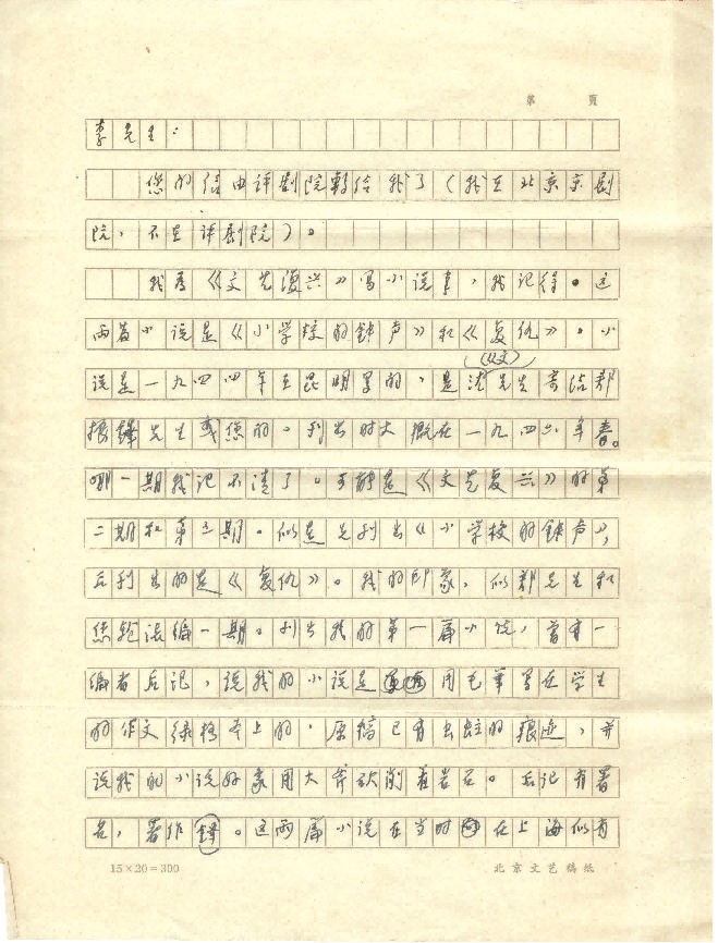 汪曾祺致李健吾信,1981年3月14日