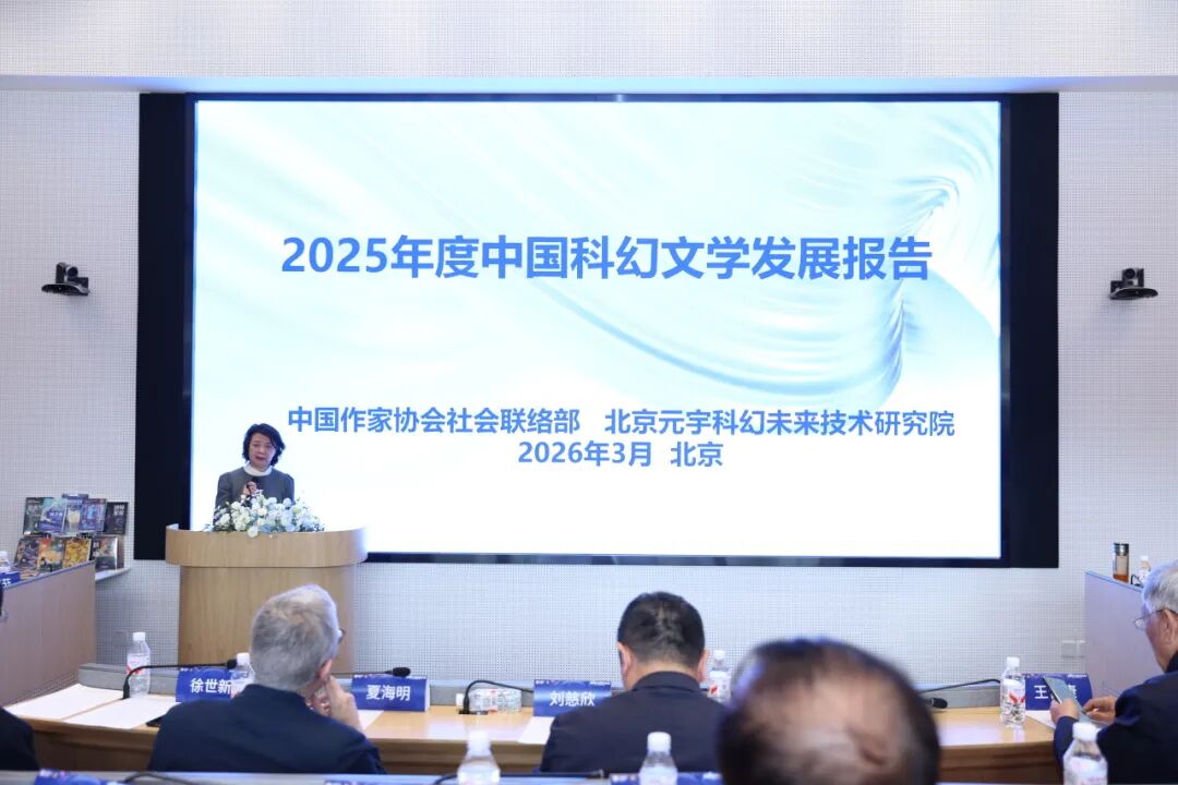 活動現場,包宏烈發布了《2025年度中國科幻文學發展報告》,這也是中國作協社聯部聯合北京元宇科幻未來技術研究院首次編撰的科幻文學年度發展報告。報告顯示,在產業規模與出版格局方面,2025年中國科幻閱讀產業總營收達54.1億元,連續八年保持增長。全年出版科幻圖書700余部,中文科幻海外傳播持續深化,覆蓋10余種語言。作者生態呈現金字塔結構:王晉康、劉慈欣、愛潛水的烏賊構成頭部,中堅作者群體穩定輸出,新生代持續涌現?!?0后”作家成為科幻寫作中堅力量,主流文學作家跨界與新銳作者崛起共同推動創作主體多元化。