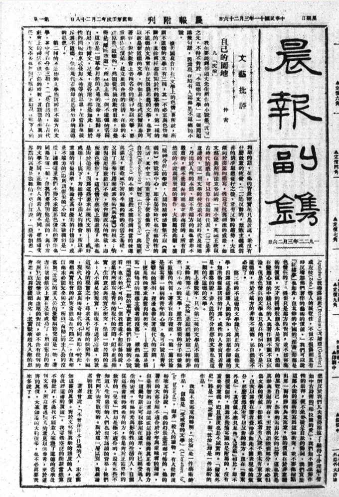 周作人1922年3月發表于《晨報副鐫》的《“沉淪”》